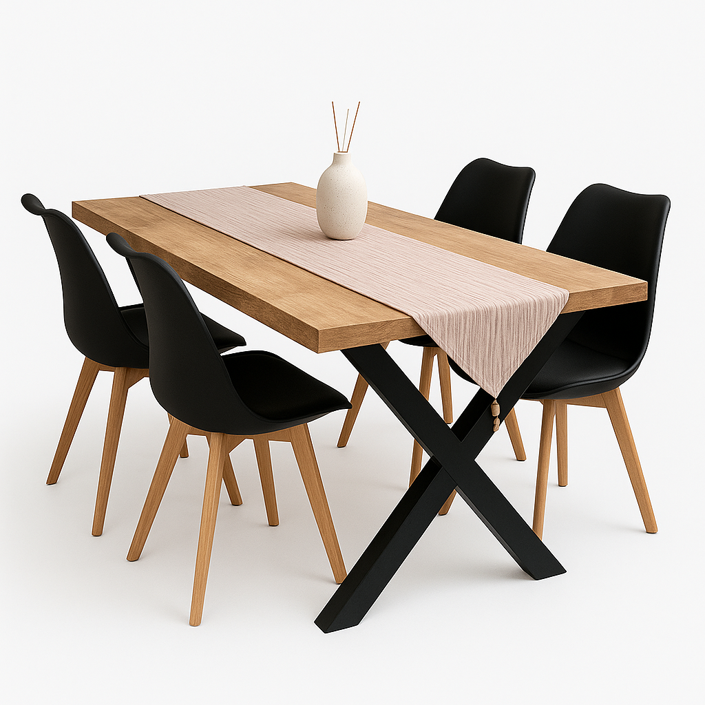 COMBO: MESA CUBO 1.40mts + 4 SILLAS MILAN NEGRAS