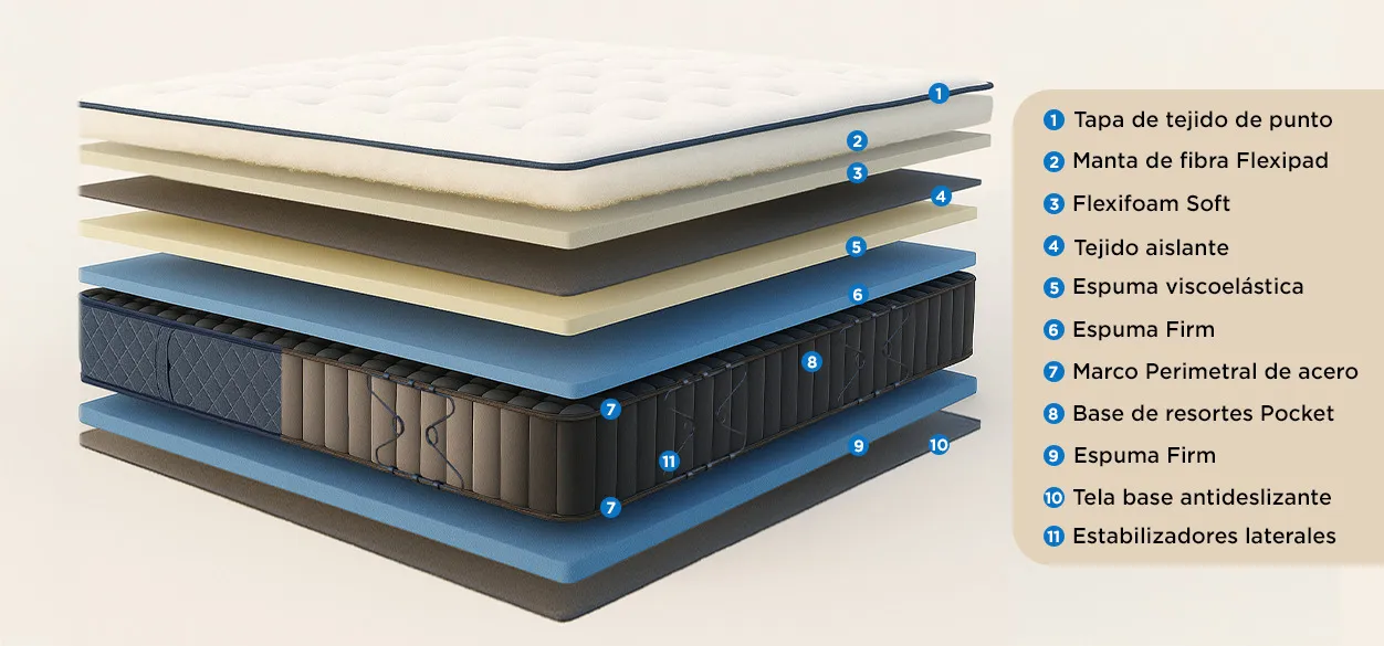- Pillow top de espuma viscoelástica que otorga una suavidad adicional única.