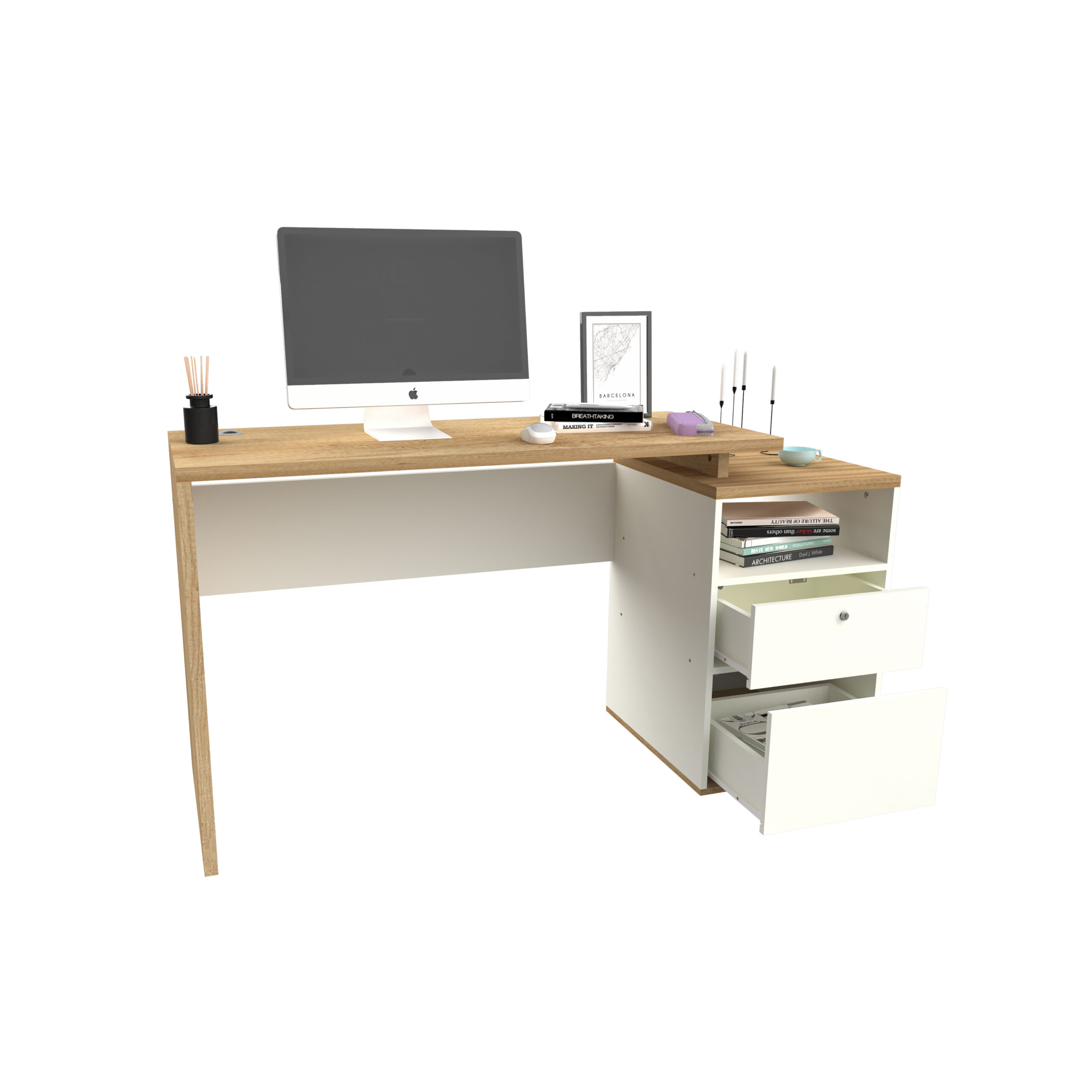 - Escritorio de 1,50 m de largo, compuesto por 2 cajones y 1 nicho.