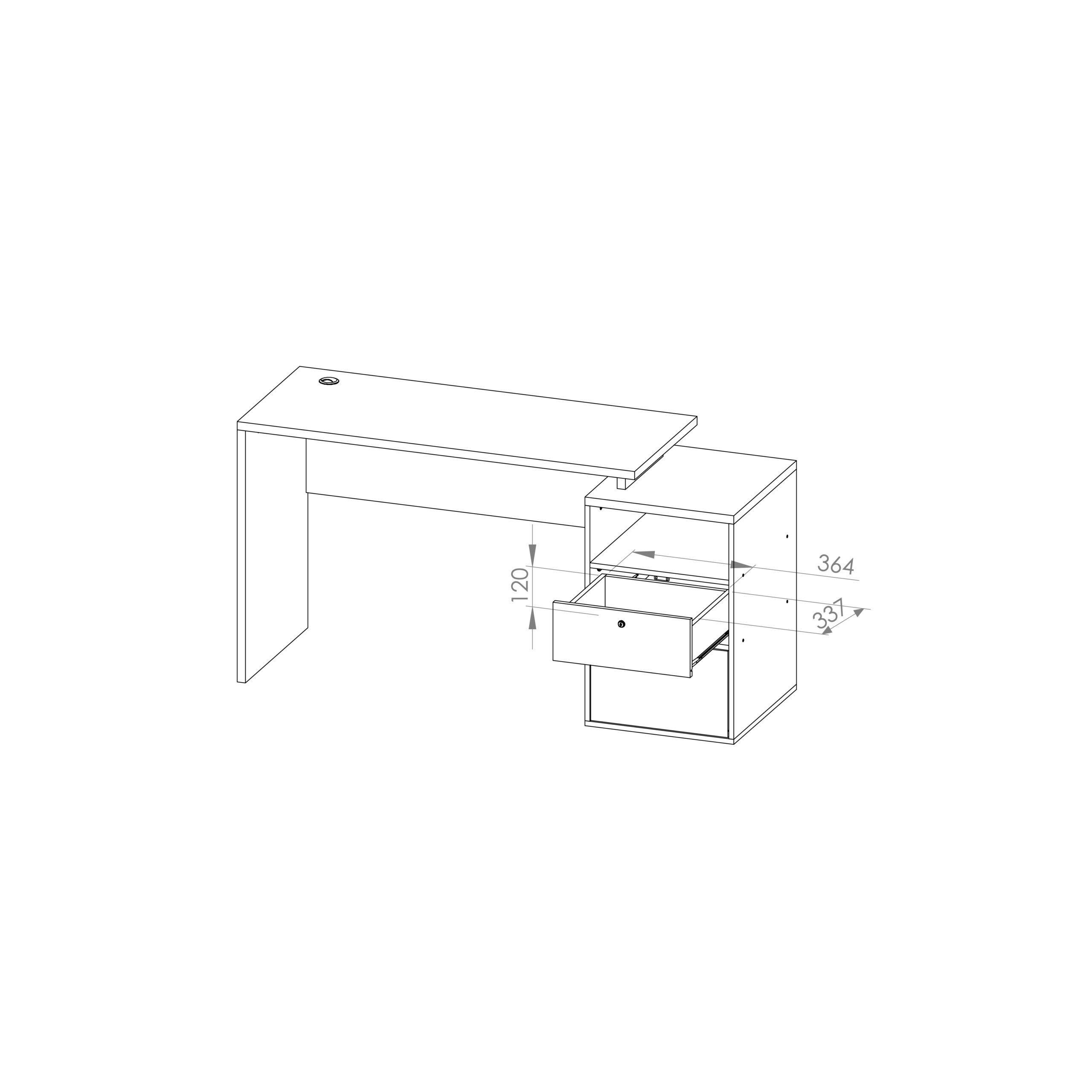 - El producto cuenta con pasa cable con tapa y cerradura en un cajón.