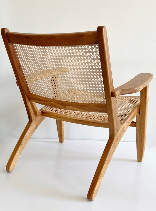 - Realizado en madera de Teka laqueada con asiento y respaldo en esterilla