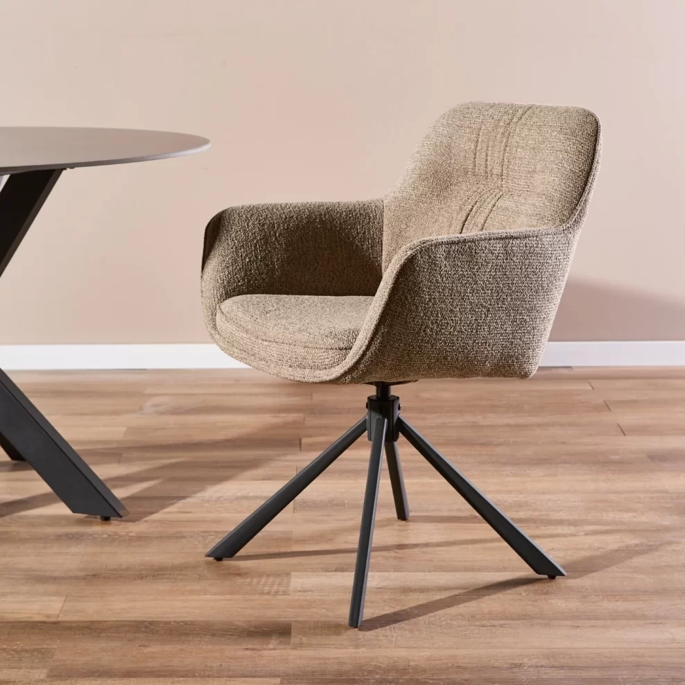 - Sillon Tapizado en chenille con textura suave y base de hierro